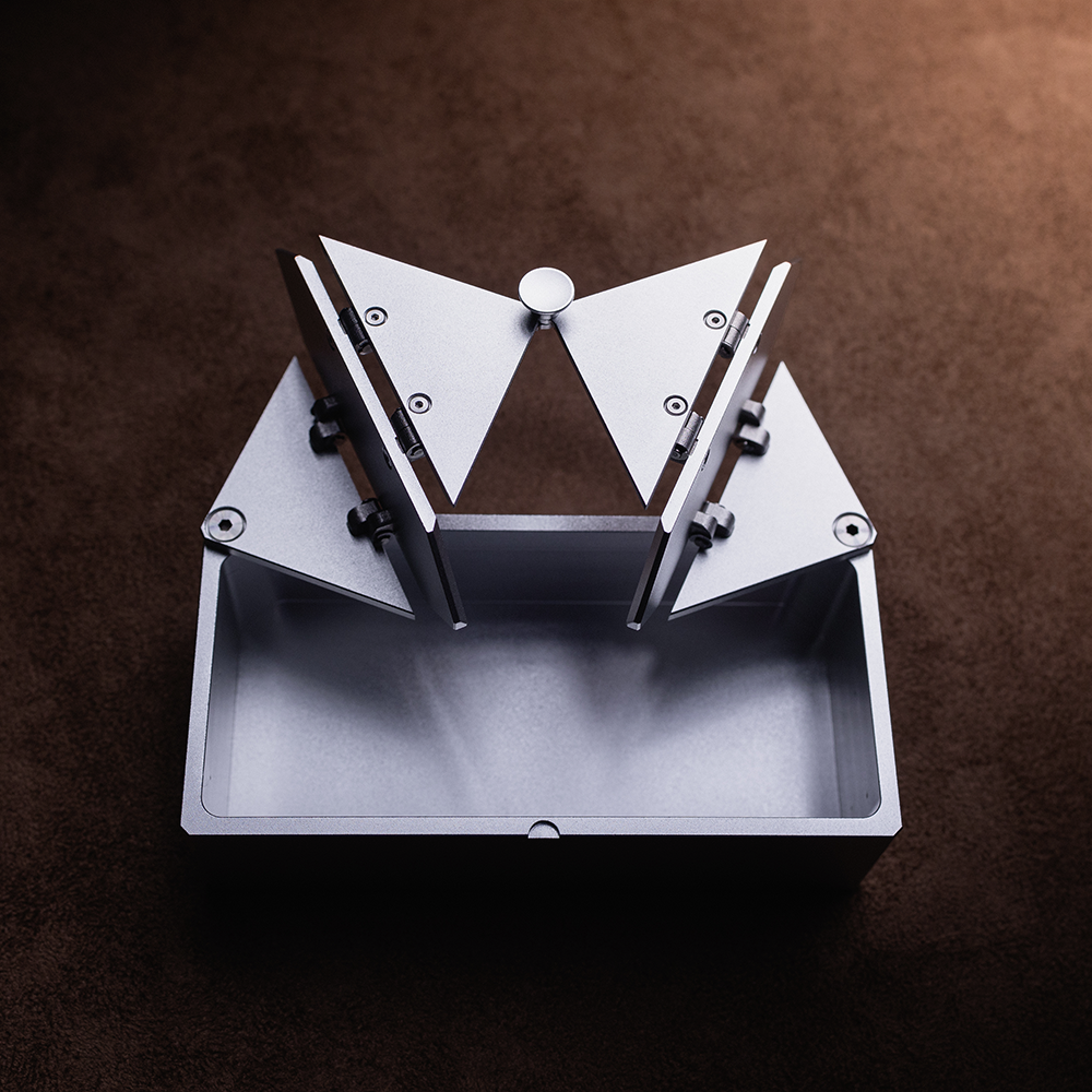 Crafted from 6061 aluminum, the Flutterbox is a testament to the harmony of strength and elegance. Its material, shaped by meticulous 5-axis CNC machining, resists corrosion and time. Each mechanism moves as though alive, flowing with precision, embodying the quiet power of engineering and the artistry of creation.